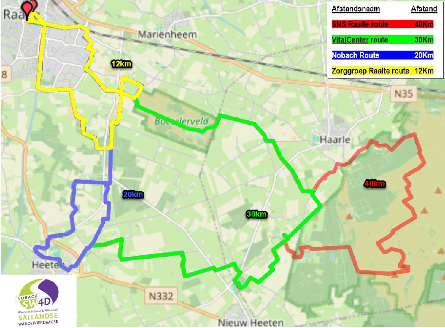 De laatste dag van SW4D 2025 biedt een gevarieerde route door het Sallandse boerenland en enkele van de mooiste natuurgebieden in de regio. De wandeling voert langs het Boetelerveld, Haarle, Sprengenberg (Sallandse Heuvelrug), Heeten en via landgoed Schoonheeten terug naar Raalte.